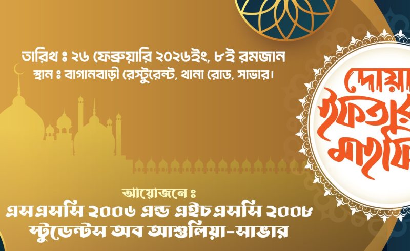 এসএসসি ২০০৬ ও এইচএসসি ২০০৮ ব্যাচের আশুলিয়া–সাভার জোনের উদ্যোগে ইফতার মাহফিল অনুষ্ঠিত।